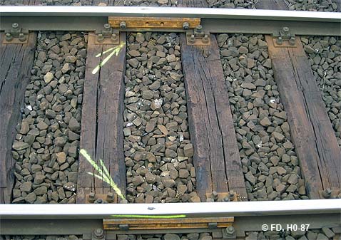 Spor med slidmærker på skinnernes overside. Fotograferet ved Lehrte nær